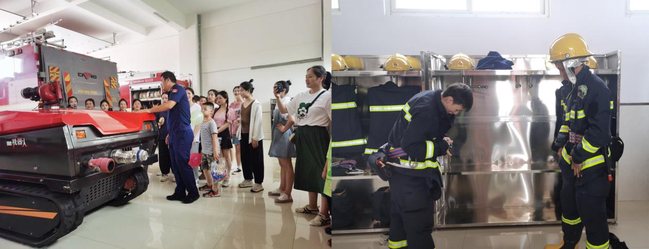 演出结束后,实践团跟随消防救援人员参观了安庆市消防支队培训基地,体验他们的训练过程,并进行了消防设施的使用学习。
