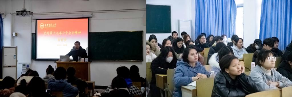 12月29日晚,公司直属党支部书记汪博武在菱湖校区教学楼507室为学院员工代表作学习贯彻党的十九届六中全会精神宣讲报告。2021级全体本科生及部分研究生代表参加了报告会。