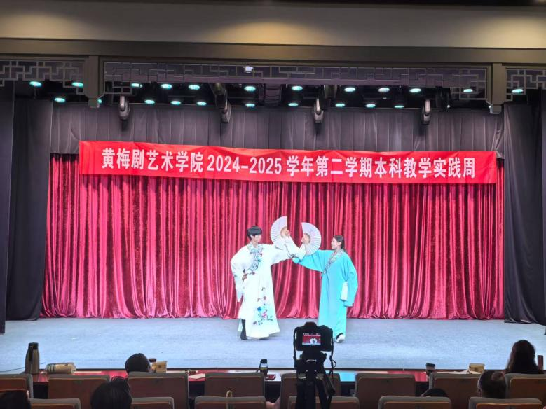 在教学实践周期间,各年级员工积极参与,以饱满的热情和专业态度展示了扎实的专业功底。5月19日上午,2021级表演本科同学们在毕业剧目《昭君出塞》,唱腔婉转悠扬,或如黄莺出谷清脆悦耳,或似江河奔腾气势磅礴,每一个音符都饱含着情感,身段动作规范优美,举手投足间尽显黄梅戏的独特韵味,一招一式皆是对角色的精准诠释,获得现场专家评委的好评。