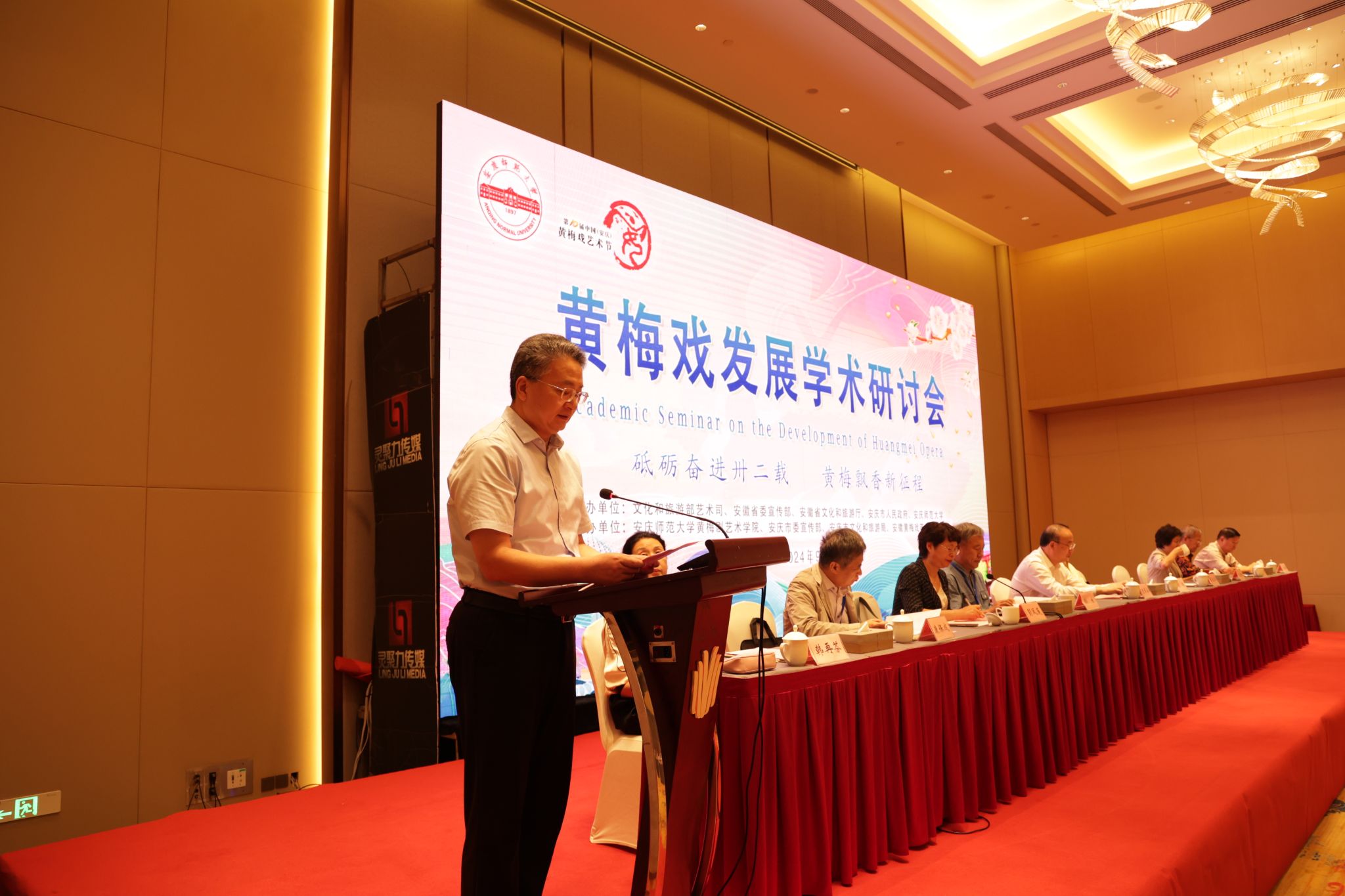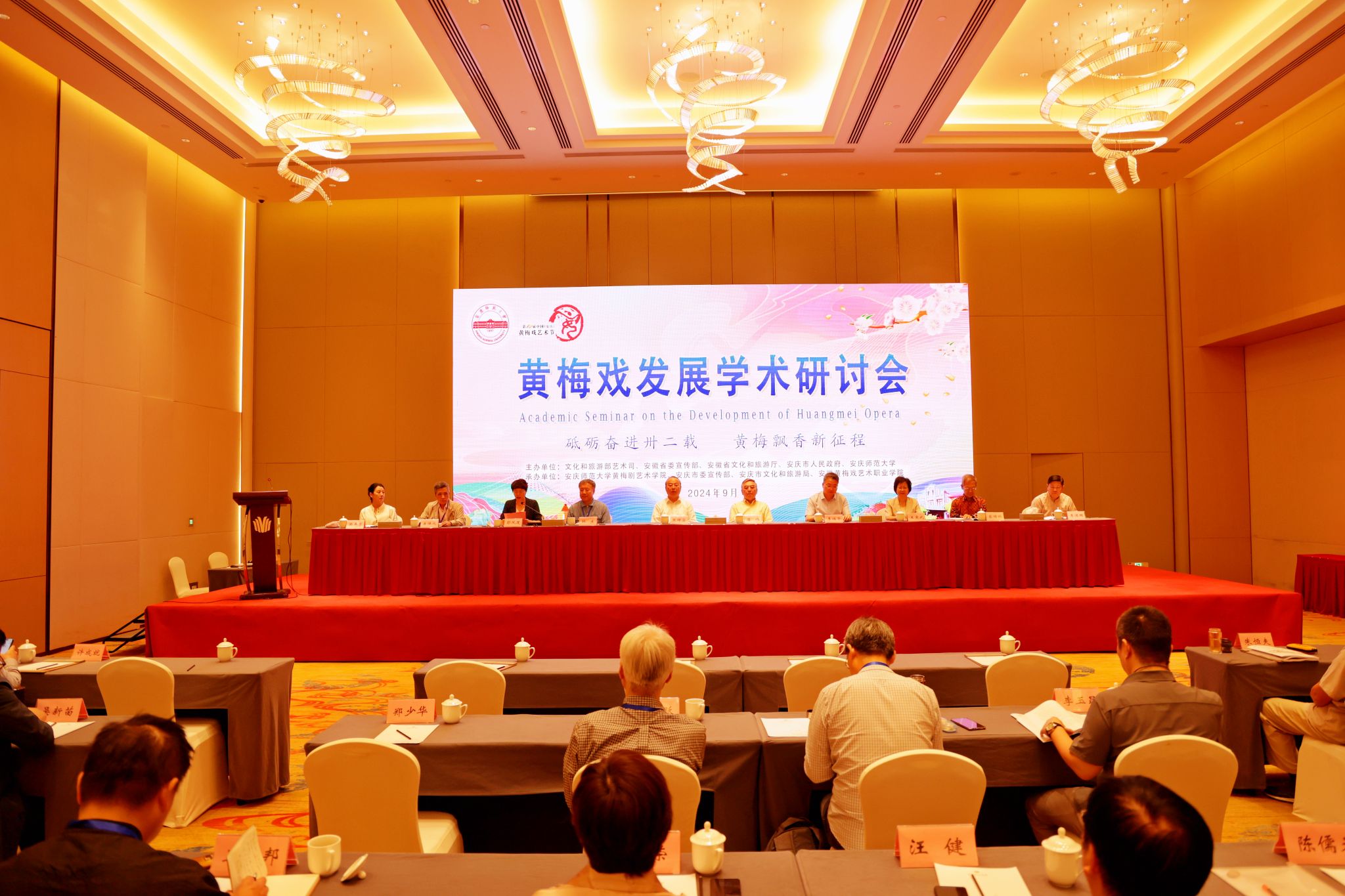 9月22日至23日,学校举办数字时代黄梅戏保护传承国际学术研讨会。安徽省政协副主席、安庆市委书记张祥安,中国戏剧家协会原秘书长崔伟,上海戏剧学院原经理、中国戏剧家协会原副主席韩生,公司党委书记李福华、董事长彭凤莲,安庆市委常委、宣传部部长王爱武,安徽省文旅厅原副厅长唐跃,中国戏剧家协会副主席、44118太阳成城集团经理韩再芬等出席开幕式。彭凤莲主持开幕式,张祥安宣布学术研讨会开幕。来自新加坡、马来西亚以及国内40余所高校、研究院所、戏曲院团100余位专家学者,学校相关职能部门负责同志,44118太阳成城集团及相关学院师生代表参加研讨会。