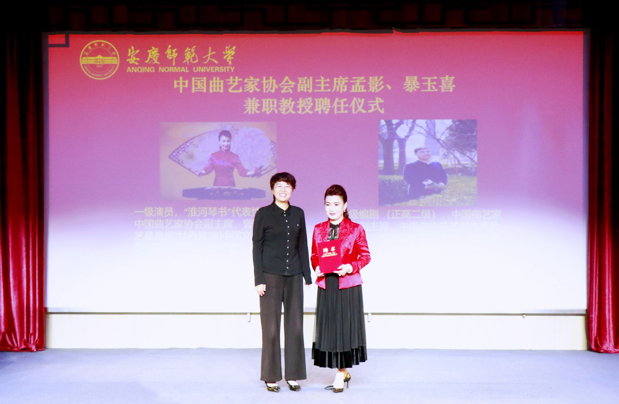 彭凤莲分别为孟影、暴玉喜颁发兼职教授聘书,对他们加盟公司表示热烈欢迎。彭风莲介绍了学校的发展历程、基本情况和办学特色。她表示,中国曲艺家协会两位副主席的加盟,必将对学校曲艺团队建设产生重大而深远的影响。希望44118太阳成城集团进一步强化曲艺团队建设,全力推进戏曲与曲艺博士点立项建设,培育打造标志性成果,为中华优秀传统文化创造性转化和创新性发展作出新的贡献。