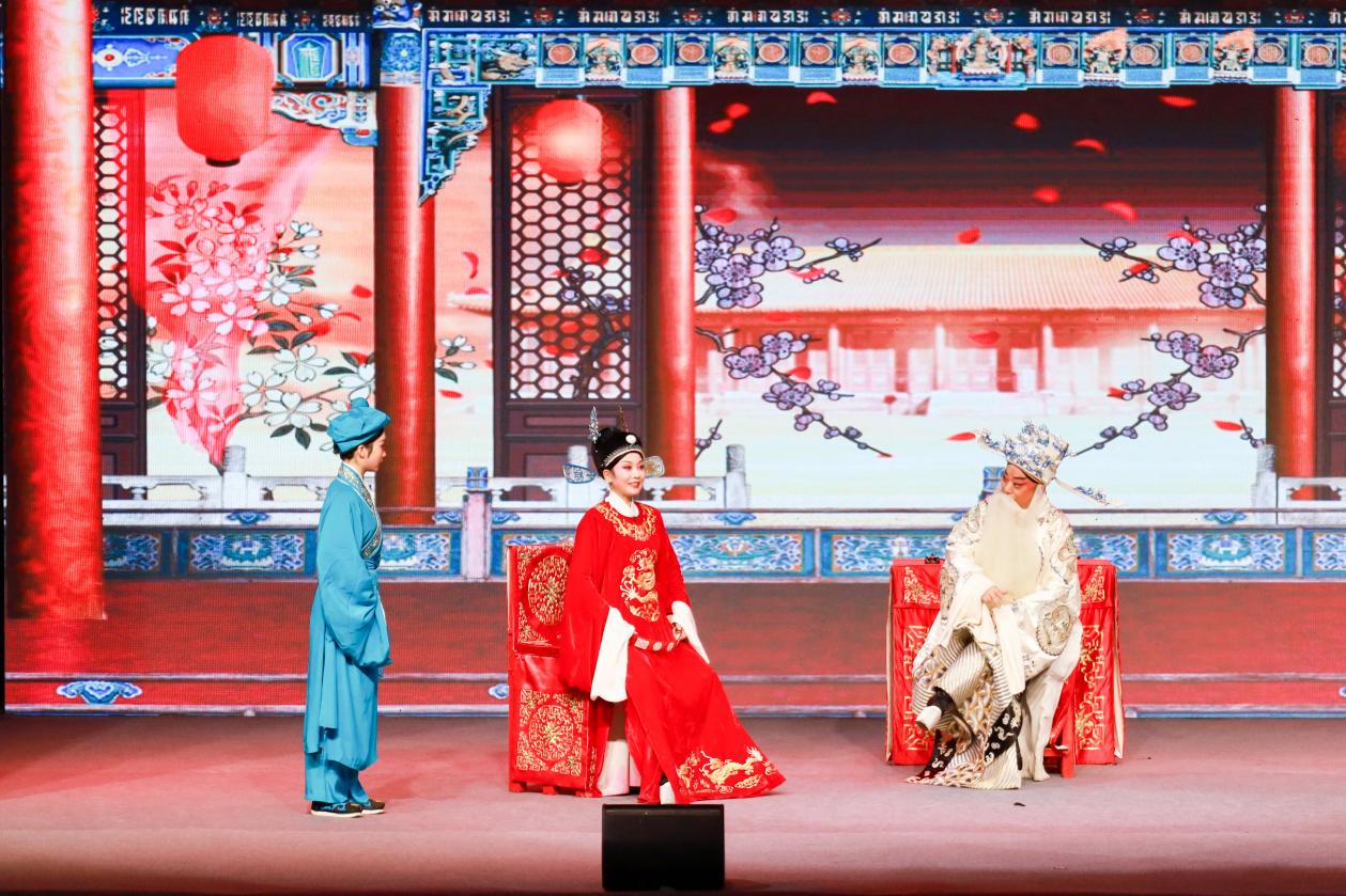演出启幕前,体育馆座无虚席。伴随着激昂的乐声,开场舞《祖国我依恋你》以灵动的舞姿点燃现场;《打猪草・对花》巧用俏皮唱腔,将乡村少年的童真展现得淋漓尽致;《邓稼先》以深情的唱腔生动诠释邓稼先的家国担当;《夜奔》通过扎实的身段将林冲的愤懑与决绝刻画得入木三分;黄梅戏经典对唱《海滩别》《夫妻双双把家还》以婉转唱腔令观众沉醉于古典爱情的温婉与浪漫;《活捉》融合戏曲程式与剧情张力,让观众身临其境;《洪湖水浪打浪》则凭悠扬婉转的曲调,把洪湖的秀丽风光与军民情怀展现得淋漓尽致;《状元府》(《女驸马》选段)情节紧凑,表演精湛,令人惊叹;京剧《沙家浜》一人三声,将角色展现得鲜活生动。