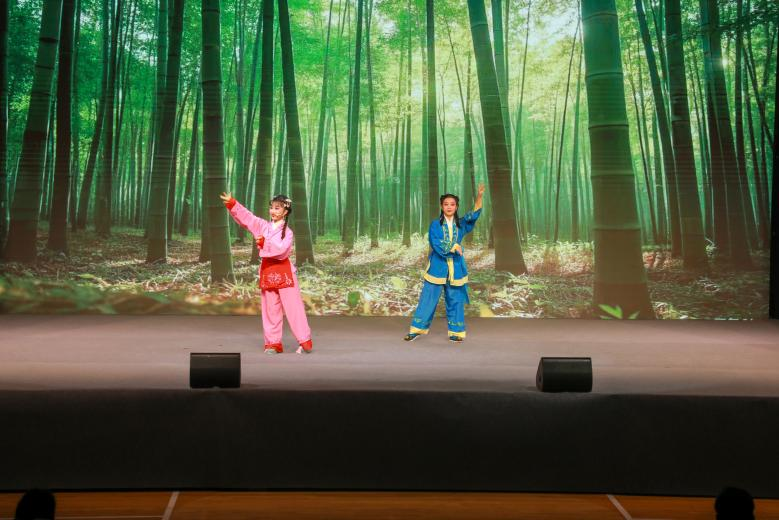 研究生方梦婷、王宇婷带来的表演唱《洪湖水浪打浪》以群舞与演唱结合的形式,重现红色经典的澎湃力量,引发师生共鸣。