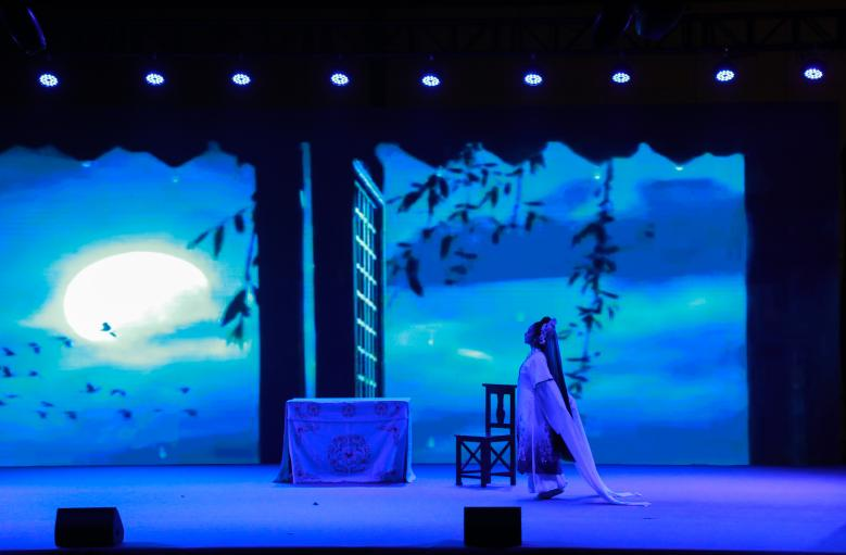 黄梅戏经典对唱《海滩别》《夫妻双双把家还》中,国家一级演员汪莉、国家二级演员汪学节默契配合,婉转唱腔令观众沉醉于古典爱情的温婉与浪漫。
